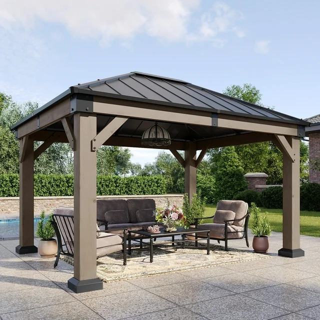 - Featuring a classic, elegant design, this hard top gazebo can seamlessly blends with your yard or patio's design. Its durable construction make it a perfect choice for outdoor barbecues, parties, or daily relaxation with family