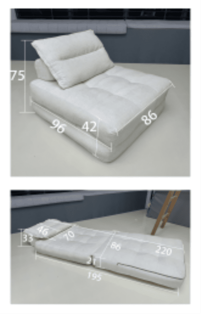 Multi-functional detachable sofa bed, this detachable sofa bed features a zipper connection that allows you to easily transform from a folding sofa to two separate floor-to-ceiling sofa cushions. It can also be used as a sofa bed or folding bed. Whether it's for a family gathering or a personal nap, the layout can be adjusted