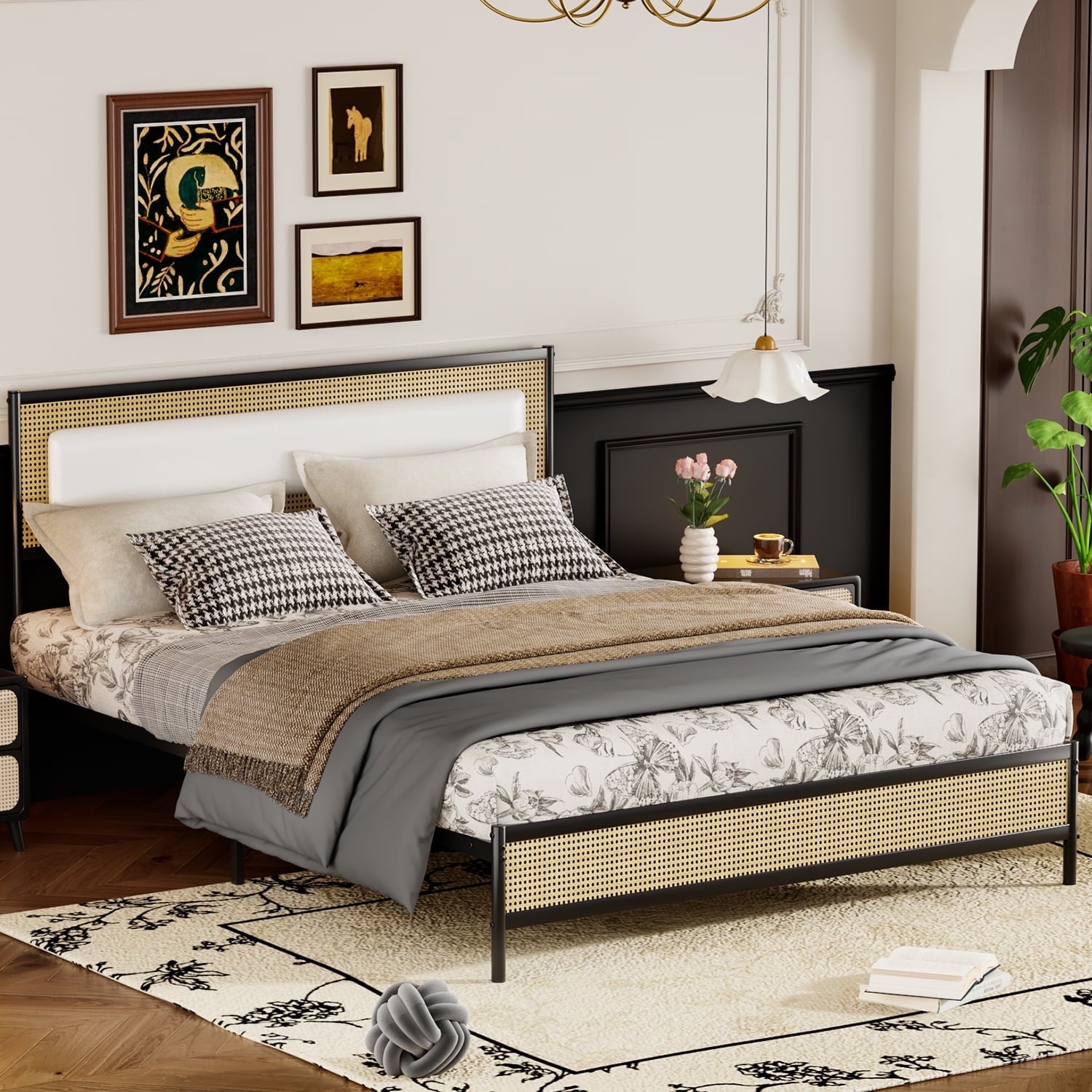 - Upgraded headboard design features a metal frame wrapped in weaving for a visually pleasing and comfortable touch, with thickened high-density foam in the center to allow you to easily lean back and read or watch movies.