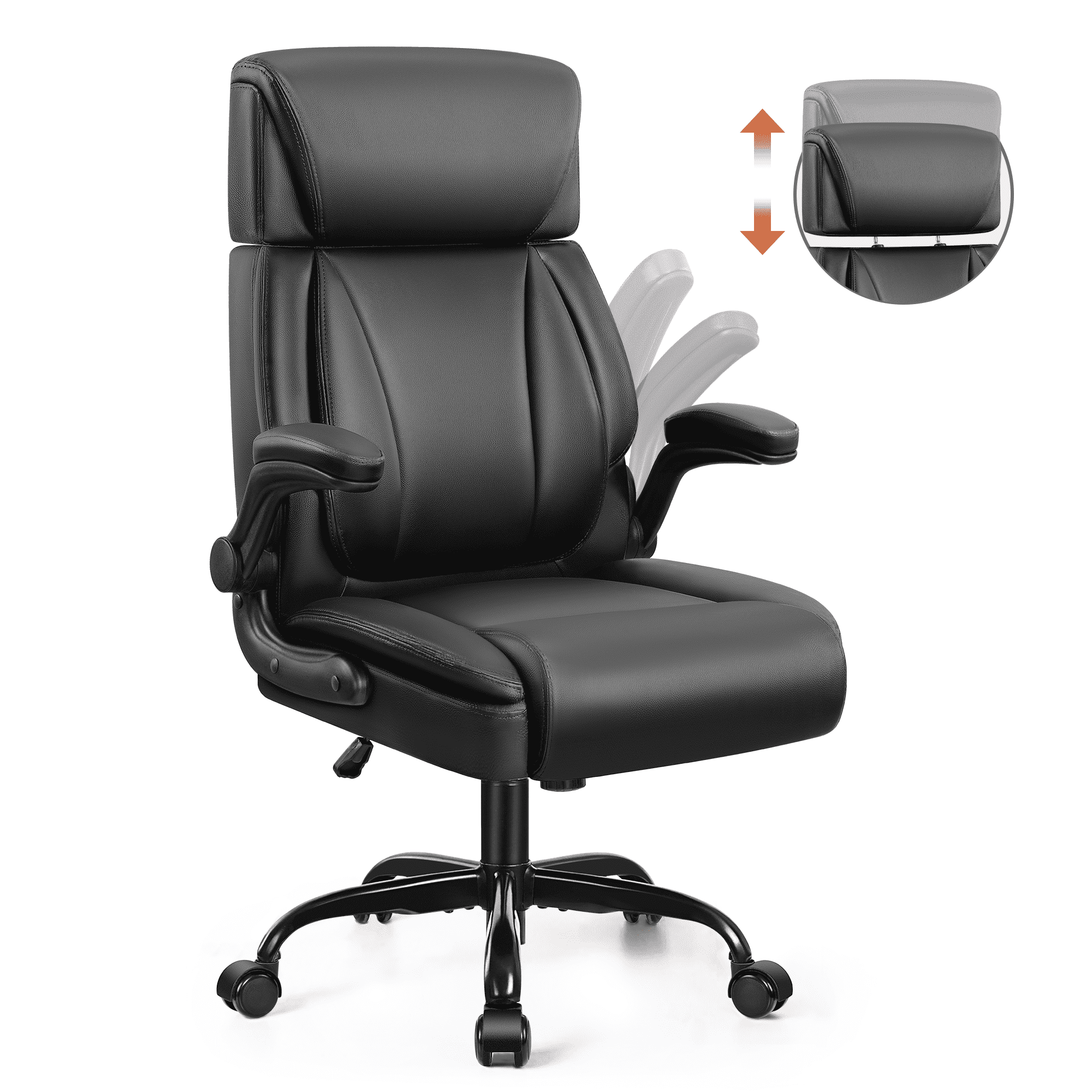 CoolHut Big and Tall Office Chair 400LBS, Adjustable Headrest Ergonomic Computer Desk Chair, Executive Leather Chair with Adjustable Armrest, High Back Office Chair Havy Duty Design, Black