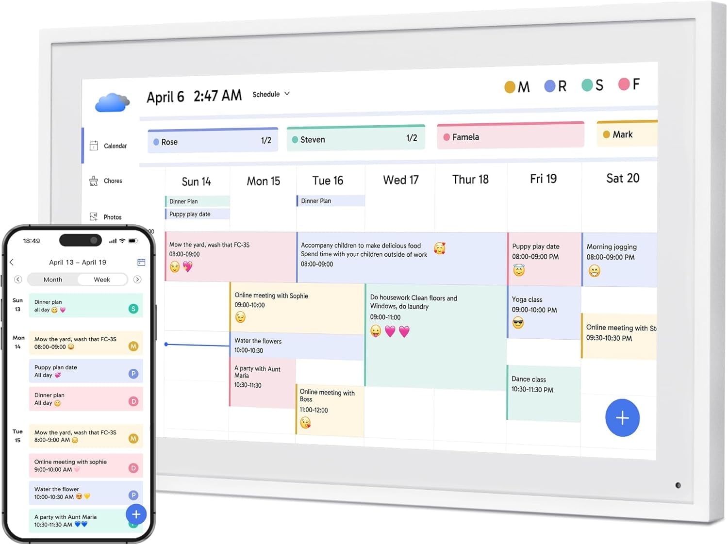 - 【Swift Setup and Seamless Sync】- Plug it in, connect to Wi-Fi, and sync your calendars for instant access to all your events. Manage schedules directly on the device or via the user-friendly mobile app. Compatible with popular platforms like Google Calendar, iCloud, Outlook, Cozi, and Yahoo, making family organization seamless.