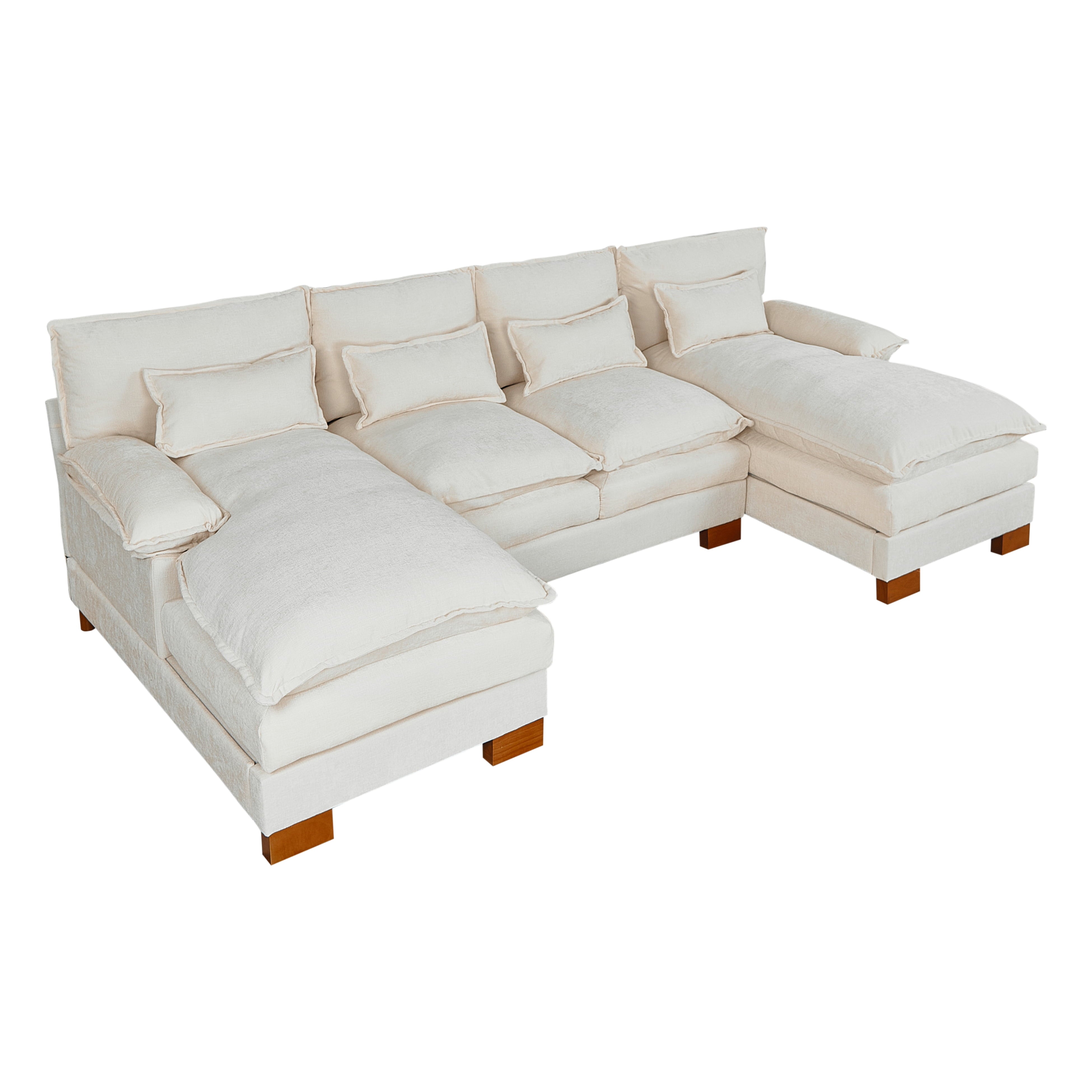 Are you looking for a super comfy sofa set for your living room or bedroom? If so, you can try our Modular Sectional Couches. This sectional couch with 2 wide chaise lounges is large enough to seat up to 4 people together. Enjoy your leisure time, whether you are solo, with friends or family. The couch is upholstered in high-density chenille fabric, ensuring softness, breathability, and abrasion resistance. Supported by a sturdy solid wood frame capable of holding up to 1100 pounds per seat, so you don't have to worry about it breaking down after a while. Anyone can install it, don't hesitate, buy it with 30-day buyer's Remorse returns, 1-year warranty.