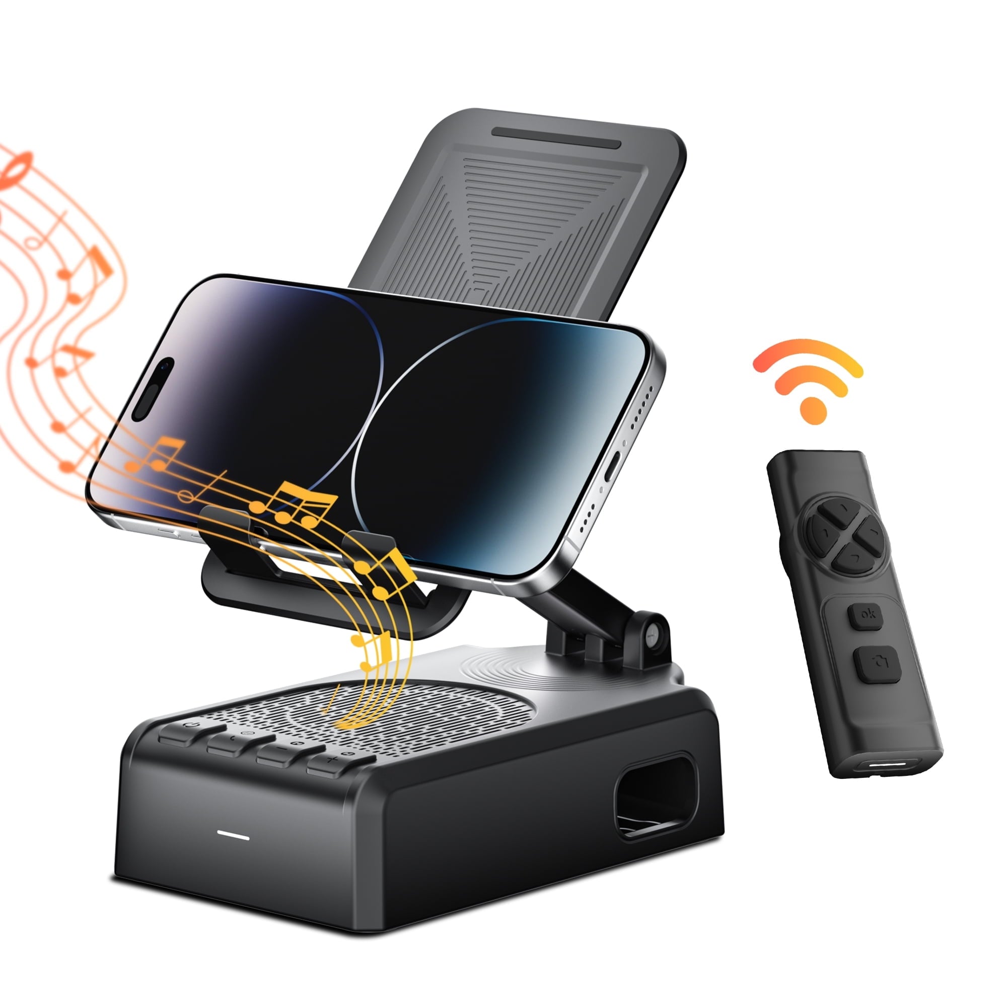 WeurGhy Portable Bluetooth Speaker Cell Phone Stand with Video Scrolling Remote, Wireless Rechargeable Foldable Induction Audio Amplifier with Microphone, Gifts for Men Women