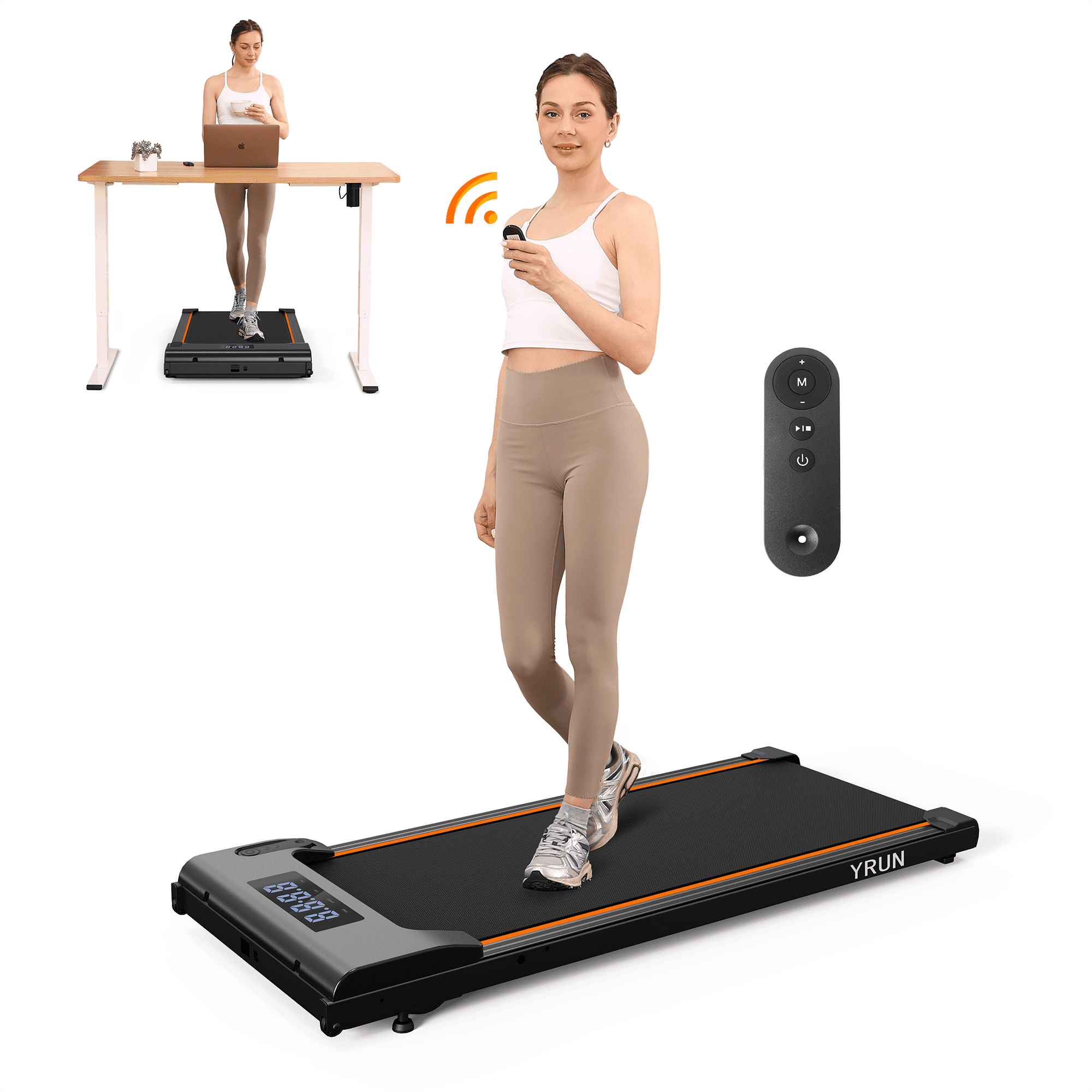 YRUN Walking Pad Under Desk Treadmill with Remote Control and LED for Home/Office, 2.5HP Brushless Motor Compact Walking Jogging Machine Portable Treadmill