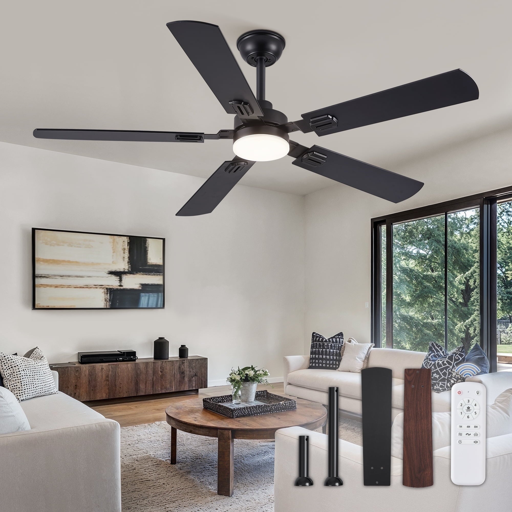 Zardon 52" Modern Black Ceiling Fan with Light and Remote Control, Ultra-Quiet DC Motor, 3 Color Temperatures, Timer for Bedroom and Living Room